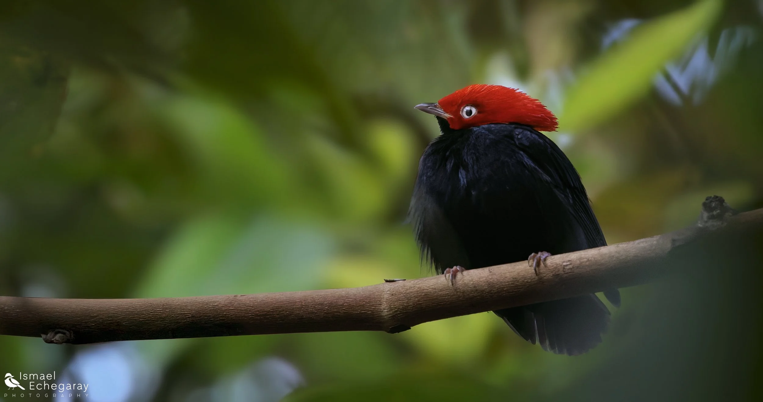 Los Manakins no son necesariamente difíciles de fotografiar, sino que requieren estar en el momento exacto. En la foto un Red-capped Manakin en una mañana muy tranquila